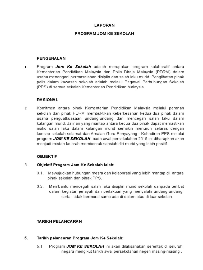 Laporan Program Jom Ke Sekolah Contoh Pdf
