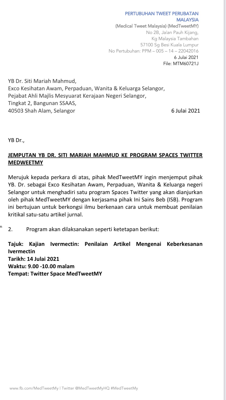 Khairul Hafidz On Twitter Salam Yb Drsitimariah Dengan Ini Kami Di Medtweetmy Ingin Menjemput Yb Ke Twitter Space Anjuran Kami Minggu Hadapan Yang Mana Kami Akan Berkongsi Ilmu Secara Akademik Bagaimana Nak